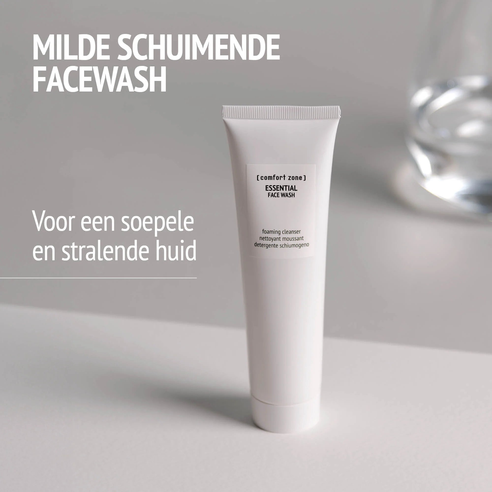 Het geheim van een prachtige huid begint met een effectieve maar zachte reiniging. De Essential Face Wash van [comfort zone] is een milde reinigingscrème die verandert in een zacht schuim zodra het in contact komt met water. Deze face wash verwijdert make-up en onzuiverheden op een delicate manier en respecteert het natuurlijke evenwicht van je huid dankzij betaïne, een natuurlijke osmolyte.